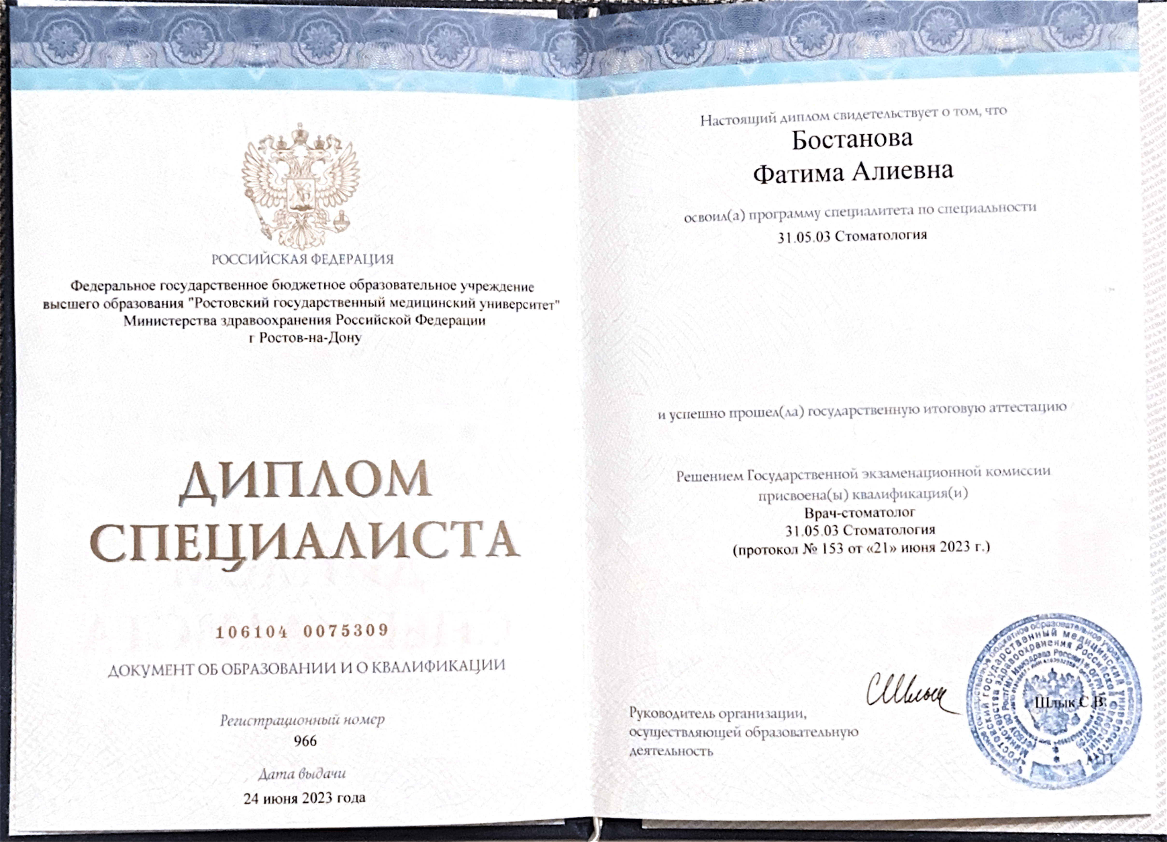 Благодаря профессионализму и опыту, Фатима Алиевна успешно решает широкий круг стоматологических задач: от профилактики и лечения кариеса у детей до восстановления здоровья и эстетики зубов у взрослых.